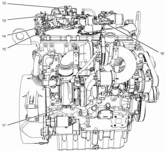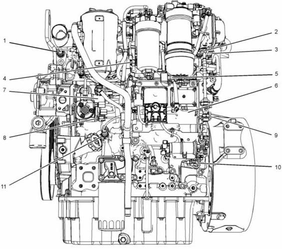 Perkins1204E-E44DE發(fā)動(dòng)機(jī)典型1204E-E44發(fā)動(dòng)機(jī)右側(cè)和頂部的傳感器位置