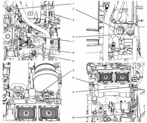 Perkins1204E-E44DE發(fā)動(dòng)機(jī)典型1204E-E44發(fā)動(dòng)機(jī)左側(cè)傳感器位置的特寫(xiě)視圖