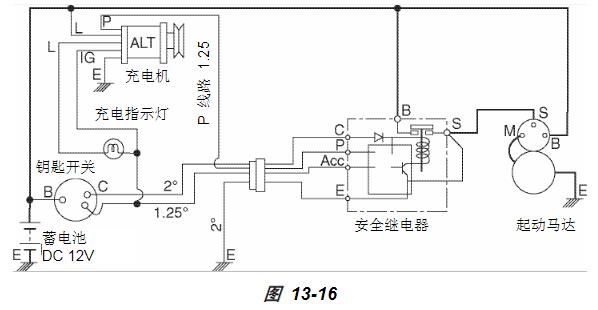 日立安全繼電器日立安全繼電器隨配備日立充電機(零件號 129136-77200)的發動機一起使用。充電機應有一個 P 端子。但是,這種安全繼電器只能兼容于不低于 12V/60A 的日立充電機。它與其它充電機不兼容。當充電機轉速超過 1400 ±120 min-1(環境溫度下)時,安全繼電器會切斷起動馬達電路。例如,當充電機皮帶輪與曲軸皮帶輪的傳動比為 0.6 時,起動馬達會在發動機轉速達到 840 ± 72 min-1時自動關閉。此后,意外操作鑰匙開關不能使起動馬達通電。接合后,安全繼電器會在充電機轉速達到不高于 498 min-1(環境溫度下)時斷開。例如,當皮帶輪傳動比為0.6 時,發動機轉速會達到不高于 299 min-1。由于普通發動機的低怠速轉速至少約為 800 min-1,安全繼電器起效一次后會在所有發動機轉速范圍下繼續起效。