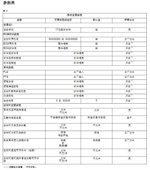 系統設置參數SMCS代碼:1901S/N:JMS1-Up;LHX1-UpS/N:MHG1-Up;LHX1-UpS/N:A8J1-Up;LHX1-Up系統設置參數是特別設定的發動機排放水平、功率范圍和特別應用的參數。參數的默認值由工廠編程設定。一些參數可以改變以適合發動機的特殊應用。如果電子控制模塊(ECM)更換,必須重新載入系統設置參數。如果你更新ECM快存文檔,則不必重新載入系統設置參數。某些設置參數被標記在發動機信息銘牌上。注意:如果受工廠密碼保護的參數被改變,卡特免除擔保責任。參數描述發動機序列號編入“發動機序列號”以匹配標記在發動機銘牌上的發動機序列號。發動機序列號不預先編入替換的ECM中。ECM部件號該參數標示了ECM的部件號。ECM序列號該參數標示了ECM的序列號。軟件組部件號該參數表示當前裝入ECM中的快存文檔的部件號。軟件組版本數據該參數表示當前裝入ECM中的快存文檔的版本數據。