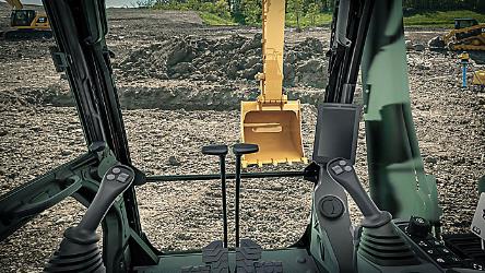 通過采用更小的駕駛室立柱、寬大的車窗和平坦的發(fā)動機罩設計,無論是溝渠內側、每個回轉方向還是操作員后部,操作員均可獲得卓越的視野。