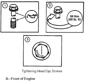 1.用清潔的SAE30強鹿約翰迪爾柴油發動機機油潤滑帶帽螺釘,并將其安裝在如前所述的正確位置。