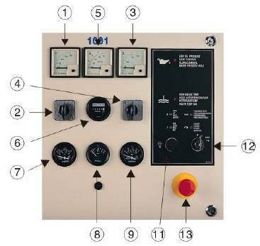 控制開(kāi)關(guān)也在儀表下面,但有多至16盞故障指示燈。在著車(chē)或開(kāi)動(dòng)發(fā)電機(jī)組之前,操作人員須非常熟悉控制屏上的儀器和控制組件,當(dāng)機(jī)器運(yùn)轉(zhuǎn)時(shí),操作員須不時(shí)監(jiān)察注視儀表,這樣做可以發(fā)現(xiàn)異常讀數(shù)從而防止問(wèn)題出現(xiàn)。