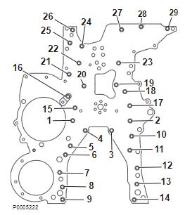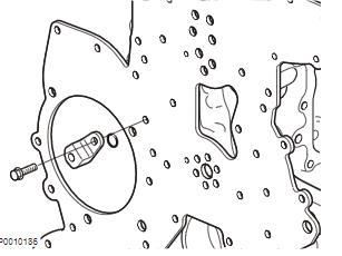 4 將新的 O 形圈安裝到曲軸上并進(jìn)行潤(rùn)滑。用相同的潤(rùn)滑劑潤(rùn)滑齒輪的外部。將沃爾沃發(fā)動(dòng)機(jī)齒輪定位銷安裝到曲軸孔中并確保油泵齒輪與曲軸齒輪嚙合。安裝螺栓并交替擰緊這些螺栓,從而使齒輪不歪斜。根據(jù)特殊緊固扭矩 8 頁(yè)進(jìn)行扭矩緊固。