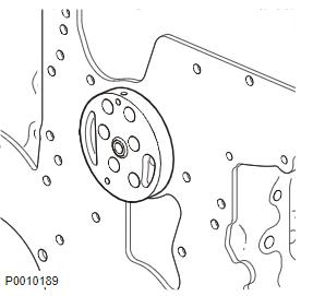 12 安裝不帶減振器的曲軸齒輪。對(duì)準(zhǔn)標(biāo)記與沃爾沃發(fā)動(dòng)機(jī)正時(shí)盤中的孔。在螺栓下面房子適當(dāng)?shù)母羝米鳒p振器替換件。