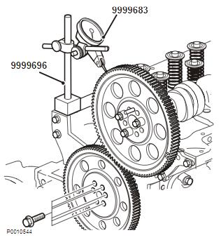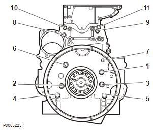 20 插入新的曲軸密封件;參見(jiàn)曲軸密封,更換(后部) 214 頁(yè)。安裝飛輪。檢查飛輪是否變形;參見(jiàn)飛輪,指示 202 頁(yè)。