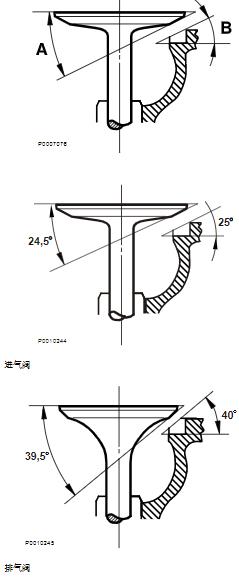4 閥座配合面涂上了一薄層標記顏料之后立即使用閥座儀表檢查閥座角度。P00070762524,5P0010244進氣閥4039,5P0010245排氣閥21-4 閥機構