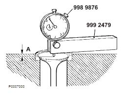 閥座,更換缸蓋和閥已拆下。工具9989876 千分表9992479 千分表架1 如果無法獲取滿意的密封件或距離(A)超出技術參數的值時必須更換閥座;參見技術數據 31 頁。