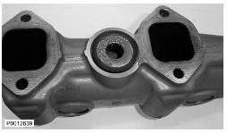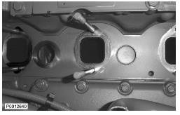 6 檢查并確認缸蓋的其他密封表面無故障。安裝新排氣歧管密封墊。注意 襯墊上有顯示哪一側面向歧管的標記。25-1 進氣和排氣歧管