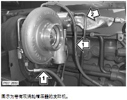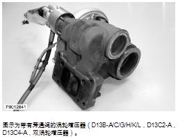 19 僅適用于沃爾沃volvo D13B-A/C/G/H/K/L,D13C2-A,D13C4-A(雙渦輪增壓器)安裝渦輪增壓器和廢氣門閥輸油軟管。用一個電纜結將廢氣門閥輸油軟管固定到渦輪增壓器回油管上。
