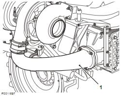 5 將管路和夾子從增壓空氣冷卻器上拆下。松開(kāi)增壓空氣冷卻器水連接軟管夾。