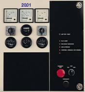 2001 control panel (1) meter, voltmeter, ammeter, frequency/tachometer, operation schedule, cooling water thermometer, lubricating oil pressure gauge, battery voltmeter.