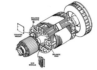 轉子磁極上一穿孔的鋁環,使轉子平衡更容易且精確。SCR模塊及平衡盤也附在該鋁環上。