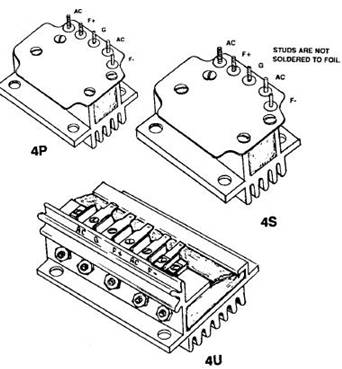 模塊包含2個SCR(可控硅)和兩個二極管,連接成一橋形。一個自由旋轉的二極管和變阻器跨接在輸出端(F+ F-)上以保護橋路。