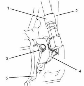 3. 從CAT卡特C13珀金斯2206柴油機輸油泵(4)上斷開軟管組件(1)和(2)。蓋住軟管組件。