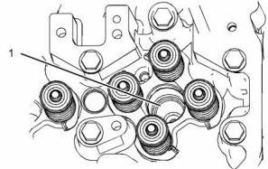 7. 使用工具(A)和軟面錘將電子單體噴油器套筒(1)安裝到氣缸蓋上。