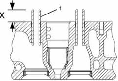 CAT卡特C13珀金斯Perkins2206發(fā)動(dòng)機(jī)氣門導(dǎo)管頂部到氣缸蓋表面的高度(X).. 35.00 ± 0.50 mm (1.378 ± 0.020 inch)