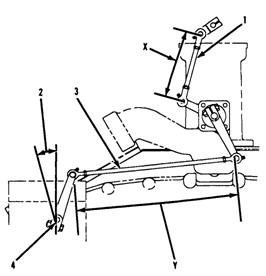 6. 在風(fēng)門裝置控制桿和橫軸軸桿間安裝上端連桿組件(調(diào)節(jié)到長度X)。
