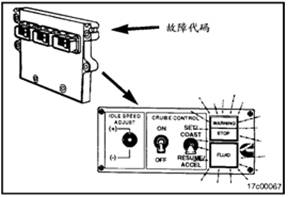 發動機電子燃油系統故障代碼可以在駕駛室內面板上的WARNING指示燈和STOP指示燈看到。