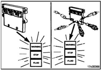 如果駕駛時STOP燈(紅色)亮起,可能是發動機故障,必須盡快以安全方式將車輛開到路邊并停機。只要這個故障存在,就必須使車輛保持停機狀態。如果是WARNING燈(黃色或紅色)亮起,該車輛仍可安全駕駛,但是應盡早將故障排除。
