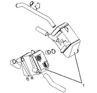 Perkins4016柴油發動機后冶器(1)位于發動機每側的飛輪端。每個渦輪增壓器的增壓空氣經過空氣管進入冶卻器。空氣流過管狀基體并由管內流動的循環水冶卻。冶卻后的空氣通過進氣歧管進入發動機。