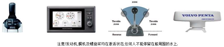 注意!發動機,艉機及螺旋槳均在激活狀態,任何人不能停留在船周圍的水上.