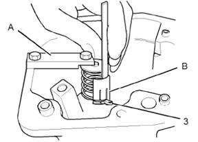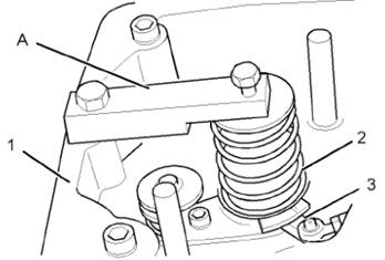 3將工具(A)安裝至搖臂箱(1)。擰緊工具(A)上的螺釘以壓縮噴油器彈簧(2)。壓縮噴油器彈簧,使控制臂(3)能夠自由移動。