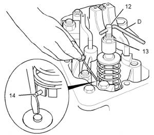 6使用改錐向正時銷(14)施加輕微的壓力。使用工具(D)順時針旋轉調節器(12),使正時銷正好接人噴油器。確保正時銷能夠移出到正常位置。