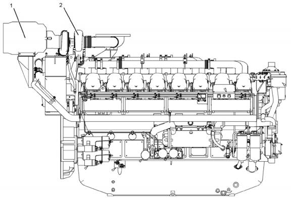 The intake and exhaust system of Perkins4016-61 TRG diesel engine