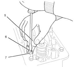 1 remove the adjustment screw (1). 2 remove rocker cover (2). 3 remove connector (not shown). 4 for the rest of the rocker arm chamber cover repeat steps 1 to 3. In 4016 • 61 TRG engine according to table in order to adjust the valve clearance is shown in 7.