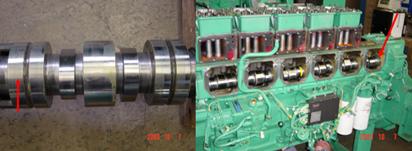 康明斯Cummins QSK23發動機具有 105 mm 軸頸的凸輪軸高位安裝在氣缸體上。這種安裝位置使得推桿行程最短。