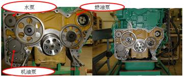 康明斯Cummins QSK23發動機機油泵和水泵裝載發動機的右側由曲軸前端通過一個惰齒輪驅動。