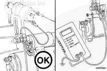 將萬用表的正極 (+) 表筆與電磁閥“S”或開關端子相連接,將負極 (-) 表筆與底盤或發動機接地位置相連。