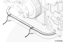 注: 如果曲軸磨損過度,發動機可使用一個采用了唇形曲軸前油封的維修用承磨襯套。