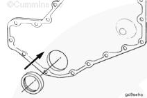 在康明斯前蓋的密封表面上涂抹一薄層密封膠(零件號 3164070)。