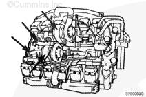 拆下康明斯排氣歧管。參考第 11 節中的步驟 011-007。