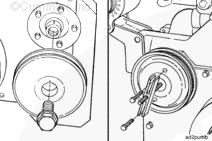 拆下附件驅動皮帶輪。 參考步驟 009-004。拆下充電機驅動皮帶輪。 參考步驟009-010,