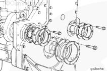 在液壓驅動惰輪擋板裝配隔圈處安裝新的 O 形圈。確保隔圈就位。