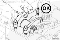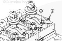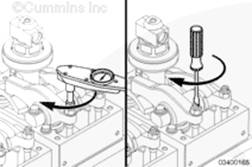 確保零件已對準,并且擰緊調整螺釘,將機油擠出氣門和康明斯噴油器機構。