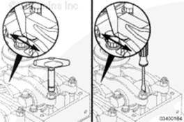 使用維修工具(零件號 3163171(進氣))或(零件號 3163172(排氣))。選擇符合氣門間隙技術規范的塞尺。將塞尺插入搖臂套筒和跨接壓板之間。