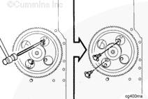 檢查噴油正時。如果需要,拆下凸輪軸齒輪并改動鍵子。參考第 6 節中的步驟 006-025。