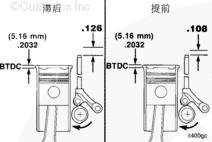 偏移鍵的頂部沿凸輪軸正常的旋轉方向偏轉越多,噴油正時延遲程度就越大。推桿行程數值將增加。從發動機前面看,K38 或 K50 發動機曲軸的正常轉動方向為順時針方向。