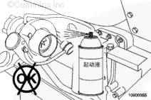 不要在這種發動機中使用起動液。使用起動液可能導致爆炸、火災、人身傷害、發動機嚴重損壞和財產損失。