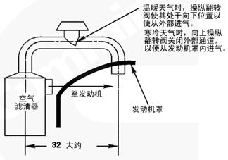 C [10°F] 時,按照圖 9 或 10 的進氣設計,從發動機罩下吸進空氣,以防止空氣濾清器堵塞。