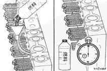 如果在 30 秒內有一滴燃油滴出或沿缸蓋表面往下流,則表明必須重新加工排氣門和氣門座的表面。
