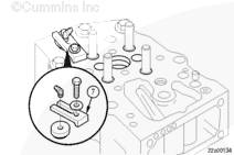 如果缸蓋安裝在發(fā)動機上,確保進氣門處在待檢缸蓋的“閉合”位置。這可通過拖動發(fā)動機實現(xiàn)。當搖臂松動時,這表明進氣門閉合。