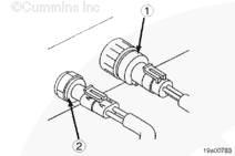注: 這是一個可選裝的傳感器,不是所有發動機上都裝有此傳感器。如果沒有使用冷卻液液位傳感器,則安裝一個短接插頭。