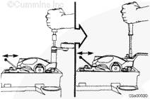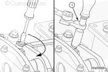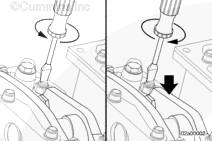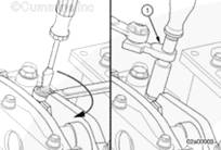 如果沒有拆下搖臂并再次安裝,在有問題的兩個氣缸上擺動氣門搖臂。如果感到氣缸的兩個搖臂都已松動,則可以開始調節其跨接壓板和氣門。