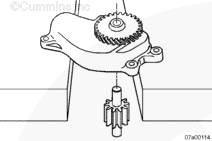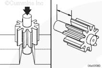 如果從軸上拆下主泵驅(qū)動(dòng)齒輪,支撐驅(qū)動(dòng)齒輪,使用手扳壓機(jī)將軸推過齒輪至規(guī)定位置。