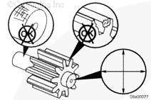 測(cè)量右惰輪(大)和機(jī)油泵齒輪的齒隙。參考第 1 節(jié)中的步驟 001-055(前齒輪系齒隙)。